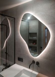 Зеркало диаметром 1200 мм с парящей подсветкой в ванную комнату над умывальником